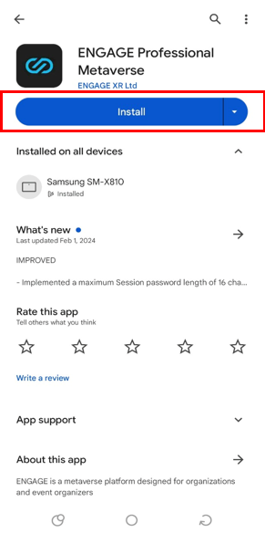 1. Access the Play Store and search for ENGAGE in the search bar.